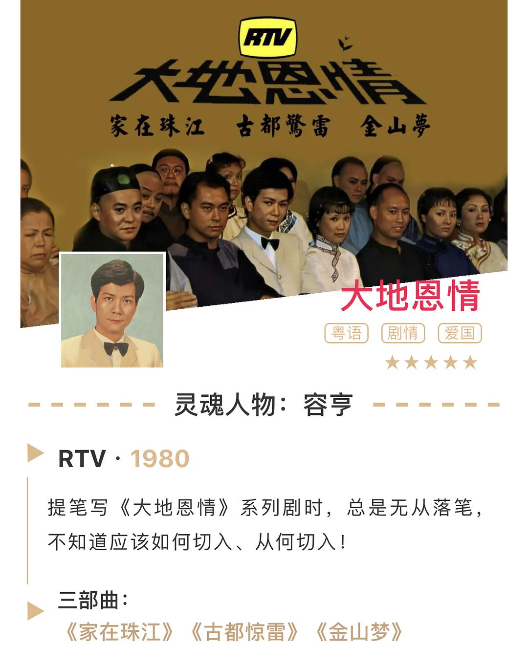 丽的大阵仗的长剧《血泪中华》曾易名《根》,三易其名后,正式定名为《大地恩情》。1980年9月1日,在香港首播,黄金时间七时正推出。同时,《大地恩情》第一部《家在珠江》配上英语,在西欧东南亚二十五国家地区播映,并于1981年2月参加“艾美奖”竞选。1981年5月11日,即将辞去总监之位的麦当雄携《大地恩情》英语版,前往法国参展,出席康城电影节。1981年10月9日,《大地恩情》片集被泰国当局禁映。