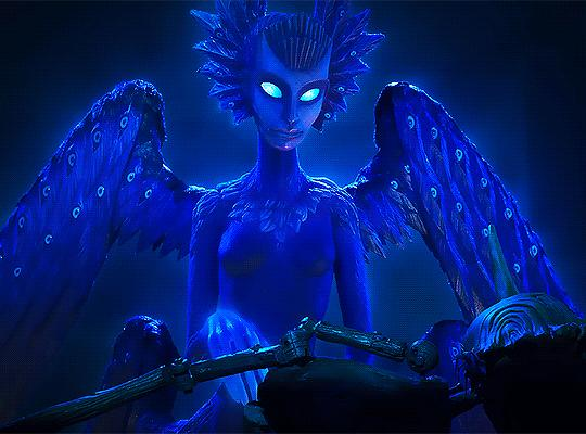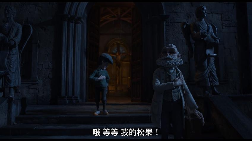 略为奇异气质的场景配合上定格动画本身角色那种滞涩的动作,让影片天然地具有某种诡异的观感,但这种观感大概也是陀螺着意想要塑造的,亦是他个人风格的标签,从《潘神的迷宫》到《水形物语》,无不是这般阴郁又迷人的。