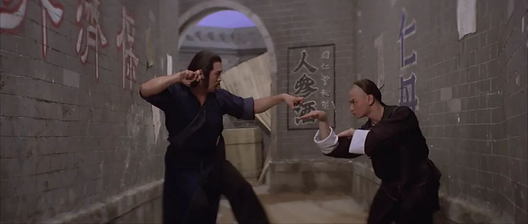 结尾巷战是全世界武术界公认的好看,甚至被《黑带》杂志评为教科书记得打斗,二十年后的《杀破狼》吴京与甄子丹的小巷器械格斗大概也有接鉴于此。王龙威用北派拳法大开大合,腿法伶俐,刘家辉用南方拳术,腰马合一。两人的较量实际就是南北拳法对决,除了徐克版无影脚,后来黄飞鸿的招数片中都有体现,不过属于硬桥硬马,演员自身功底展示。一时间两人在小巷内打的砖石横飞,观众都能感受到迎面而来的拳脚之风,看起来非常过瘾。随着两人打合,王龙威代表北派拳师聊下一句:广东前五虎以你黄麒英为尊,后五虎当以你儿子黄飞鸿为首。大概是为了邵氏《前五虎与后五虎》打广告,也可以看做刘家良导演一点点私心,毕竟作为黄飞鸿隔代传人为主的刘家班,给祖师爷扬名立万也就是再给自个打广告,横竖都是不亏的。