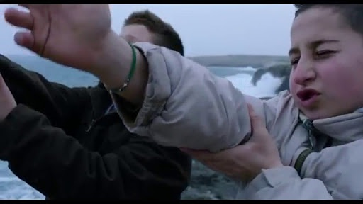 回到另一条线索,小男孩在整个片子中潜移默化的成长在我看来正是对整个难民问题的反映或者更进一步说是对人与人,人与自然问题的反思。这条线索寄予着导演更深层次的思考。小男孩生活在一个以打渔为业的家庭中,影片中那场他和父亲出海的场景也让我影响深刻,小男孩蜷缩在船上,随着船身的晃动,逐渐开始吃不消了,脸色越来越苍白,最后还是忍不住呕吐。单独看这场戏可能并没什么,但是导演借助蒙太奇神奇的魔力,将这幅画面接在了难民登陆之后就让人饶有琢磨的意味。在影片中发生在小男孩身上另一个最主要的事情就是左眼的弱视,医生对他说,你习惯了用右眼去看事物,久而久之就造成了你左眼的懒惰,所以要用眼罩来矫正视力。于是小男孩开始了用左眼的生活,一切都变得不方便,就连自己最钟爱的弹弓都用不好了。可是随着小男孩逐渐逐渐开始习惯,左眼的视力也从10变到50,而伴随着着他的也是无形中的变化。最为明显的一处就是他前后两场去鸟场的场景,前一次他和朋友想方设法用新制的弹弓去攻击,而第二次他却尝试和鸟儿去“对话”,前后的变化给了观众一个很明显的一个思维的导向。当我们进一步去思考,其实大多数的人类也不正是如此吗,习惯了用一以贯之的眼光去看事物,用一尘不变的价值判断去思考。可是逆向的改变之后,就会发现事物会多出新的可能,对事情的态度也会随之而改变。在对待难民问题上各国的态度其实就是一个很好的现实演绎。当然在这个问题上会牵扯上太多其他的因素,不是简单的正反对立就可以说的清楚,但这部片子给了我们一个最简单的却也是最基本的思考的逻辑起点。