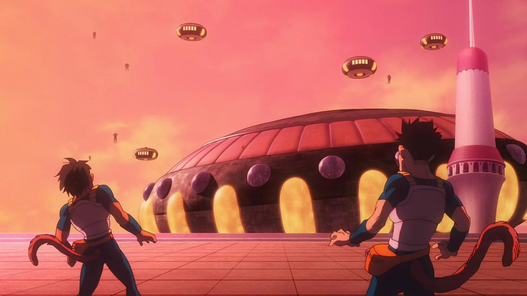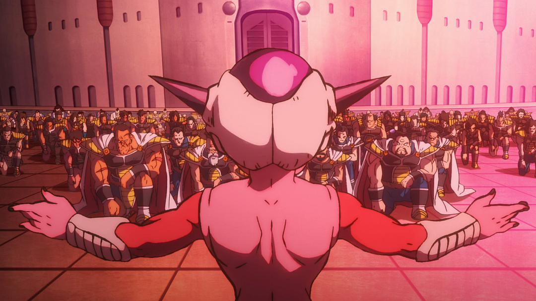 这次的《布罗利》既是续集,也带有一点“前传”色彩。一上来先从41年前的贝吉塔星讲起。弗利萨被他老爸带去贝吉塔星检阅赛亚人小弟。这一幕很有黑帮电影里两代教父交接班的感觉。通常这种时候,都会有下面的人不服新任龙头老大,想要挑事,新老大正好借机杀人立威的桥段上演。