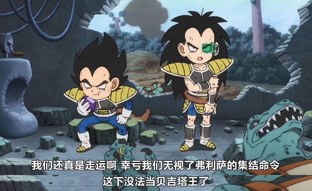 7,出现了贝吉塔,那巴,拉蒂兹在外征服星球的画面,这是第一次用画面把三个幸存者放在一起,还多了两个没提过的赛亚人(按主线里的剧情不应该还有其他幸存的无名赛亚人了)。并且有那巴询问贝吉塔弟弟的剧情,这里联动了龙珠OVA《归来!孙悟空和伙伴们》里贝吉塔弟弟塔布尔的剧情。