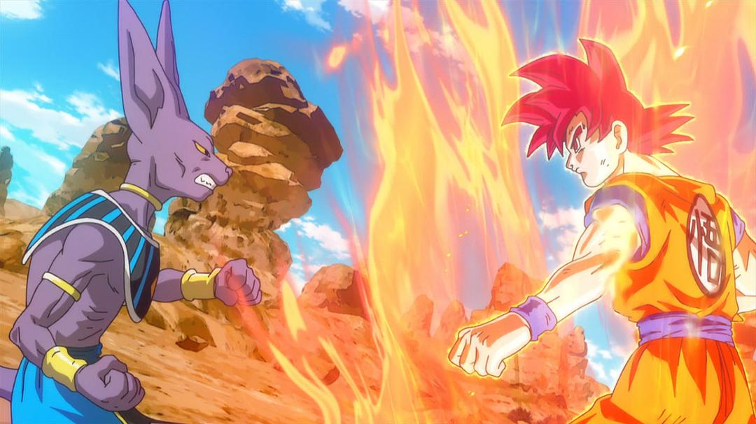 通过蹭撒旦先生热度的方式消灭了正太版魔人布欧以后,孙悟空和同伴们终于为宇宙迎来了和平。理论上本该如此,但是突然又冒出了一对神秘基友,自称破坏神比鲁斯和他的仆人维斯,实力甚至还在魔人布欧之上。两个不速之客大闹布尔玛38岁大寿,逼出了贝吉塔的护妻狂魔真面目。明明很贪吃却居然能克制自己的食欲、拒绝寿宴邀请的孙悟空突然现身,化身超级赛亚神,与使出七成功力的破坏神勉强打成平手。从黑毛到黄毛再到红毛、蓝毛,随着发色变换,赛亚人的战斗力不断飙高。不过我觉得最强的一定是绿毛的,毕竟那是能让破坏神哀嚎的芥末的颜色。