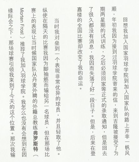 有趣的是,而李宗伟的自传书籍名为《败者为王》,英文名却是“Dare to be a champion”,敢于成为冠军。