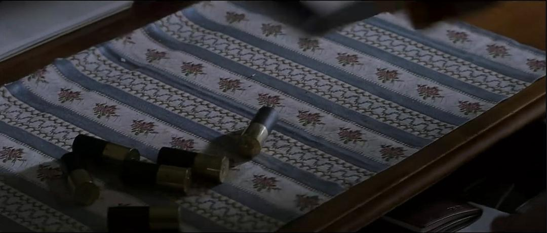14、加上伯恩拿在手里的那枚,一共七发霰弹,可以双发也可以单发。分别用在:稻草堆一枪、朝天一枪、击中杀手的左肩和右手各一枪。
