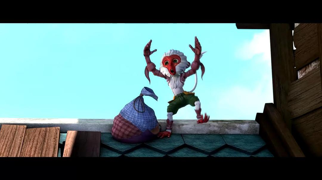 2.在所有奇幻类的电影或动画中宠物随从的角色,这部电影里的猴子很是眼前一亮,调皮搞笑捣蛋,他出场的处理非常贴切,会使你联想到许多关于东南亚纪录片中猴子。掉包主角的神器后那一场屋顶追逐非常精彩。