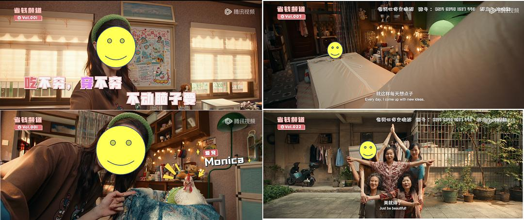 然后镜头切女主在做省钱up主的一组视频内容画面(还在做人物介绍)