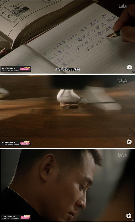 黑龙会画面左侧进入,然后在画面中间分开,形成新的视觉流动,配上台词,增加紧张感