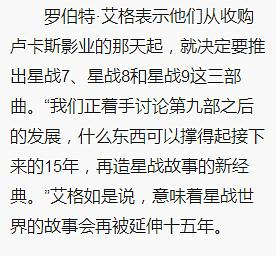 我们以《星球大战》为例,前年有《星球大战7》,去年有《侠盗一号》,今年有《星球大战8》,明年有《韩索洛外传》,后年有《星球大战9》……几乎是每年一部的速度,而且迪士尼CEO还透露星球大战这个IP至少还要再战15年。