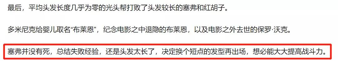 《速度与光头》都拍了10部了,光头家族总共就死了三个人,头发最长的莱蒂、韩、吉赛尔,而光头一个都没死。