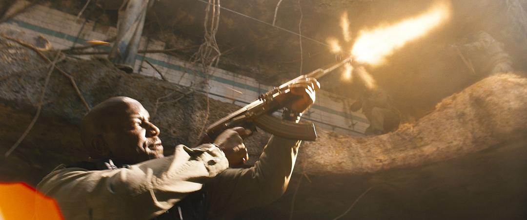 ⑦动作戏平庸。飙车戏我单独拿出来说,这里主要指的是肉搏戏和枪战戏。首先,肉搏戏很少,并且打的也乱糟糟的,无论是秘密基地天井的打斗、赵喜娜和老范的屋内互抡,还是车顶赵喜娜和反派打手的solo,都很寡味,那种拳拳到肉的暴力感一点也没呈现出来;枪战戏就更搞笑了,刚开场去飞机残骸那里拿东西的枪战戏,简直一“抗日神剧”,而后面雇佣兵开枪,基本就完全是放炮仗了。在枪战逐渐鸡肋的情况下,肉搏也没拍好,真的是很灾难啊,毕竟你总不能一直在飙车吧。