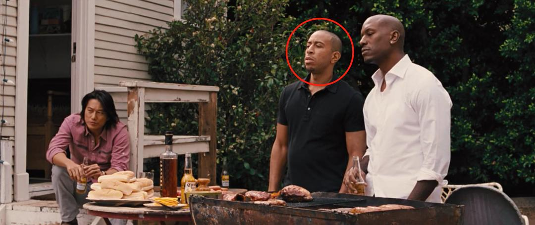 《速5》中,罗曼拿着布莱恩的证件去警局,他把证件上的照片换了,却忽略了证件上还写着“白种人”,他只好说自己是晒黑的。