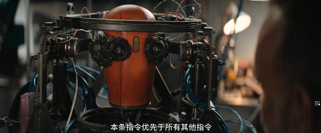 4)如果芬奇不在,机器人必须保护小狗。本指令优先于所有其他指令。(后面的对话中Jeff问芬奇什么时候会“不在”,芬奇没有回答,然后就停电了。Again,芬奇觉得自己命不久矣。)