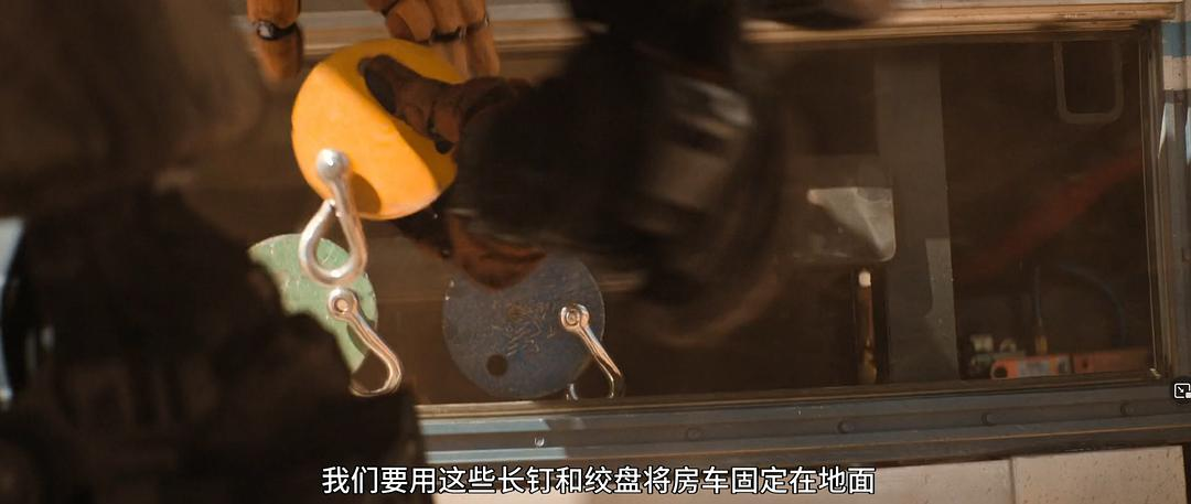 再下个镜头Jeff把备用胎推出来了,而且告诉芬奇:我们很幸运,南风房车安全性不好。(基于之前扫描进机器人的南风房车指南说的)。
