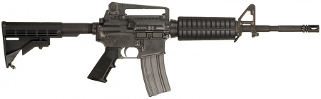 中枪警员的黑人搭档在被匪徒袭击后,从警车中拿出M4A1还击。 话说1997年在好莱坞北部发生了一起银行抢劫案,两个匪徒拿着AK-47, 穿着防弹衣,而和他们对抗的LAPD只拿着手枪,此次事件造成了警方重大人员伤亡。从此以后,美各地警察开始在车内配备半自动步枪或者霰弹枪,用于压制悍匪重火力。2003年的“紧急44分钟”就真实地还原了这个事件。https://movie.douban.com/subject/1308072/