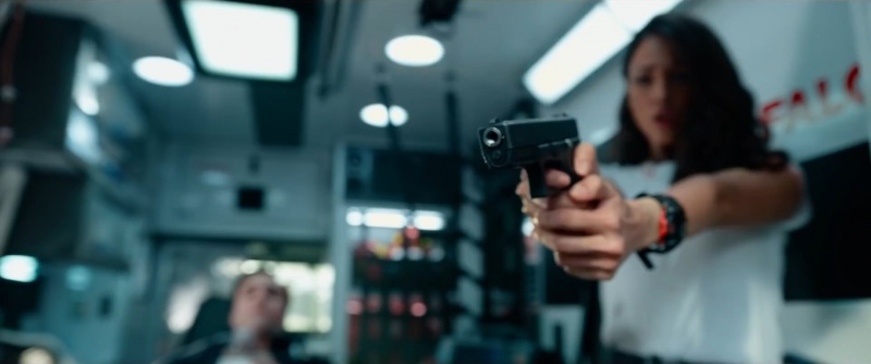 《亡命救护车》也是在这链条上的一个标准产物,我们单从梗概就能判断。威尔为了筹措患癌妻子的手术费,在求助兄弟丹尼时卷入了银行抢劫案中,然而事情并不顺利,他们不得不挟持一辆救护车逃生,没想到车上还有一名被他们枪伤的垂危警察扎克与急救专家卡姆。