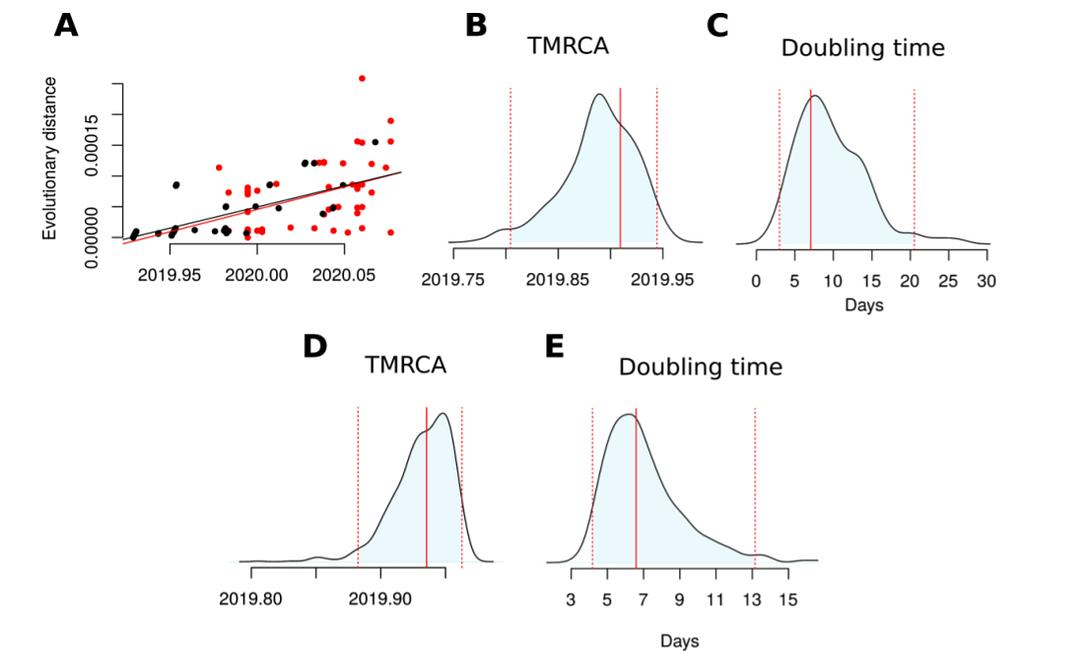虽然对生物和化学一无所知,但这段话的第一个词肯定是后制小组粗心,把贝叶斯分析的Bayesian 截成了ayesian。再往下看,第七行居然还有引用文献!("in line with previous reports based on the same genetic data [7]")。但这里就已经不对了,如果有先前就发表的文章采取了“相同的遗传学数据”显示了相同的“传染速度”(doubling time),那么这不就意味着DH2(剧中的无敌强化武)绝非郭晋安萧正楠他们这组人的独家制备品,并且DH2的一些传染病数据早就已经公开了么。