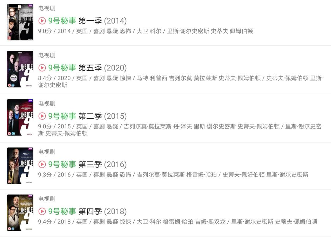 到现在(2020年)为止,"Inside No. 9"一共有五季(外加一个万圣节特别篇),五季的编剧和主演都是这二位。