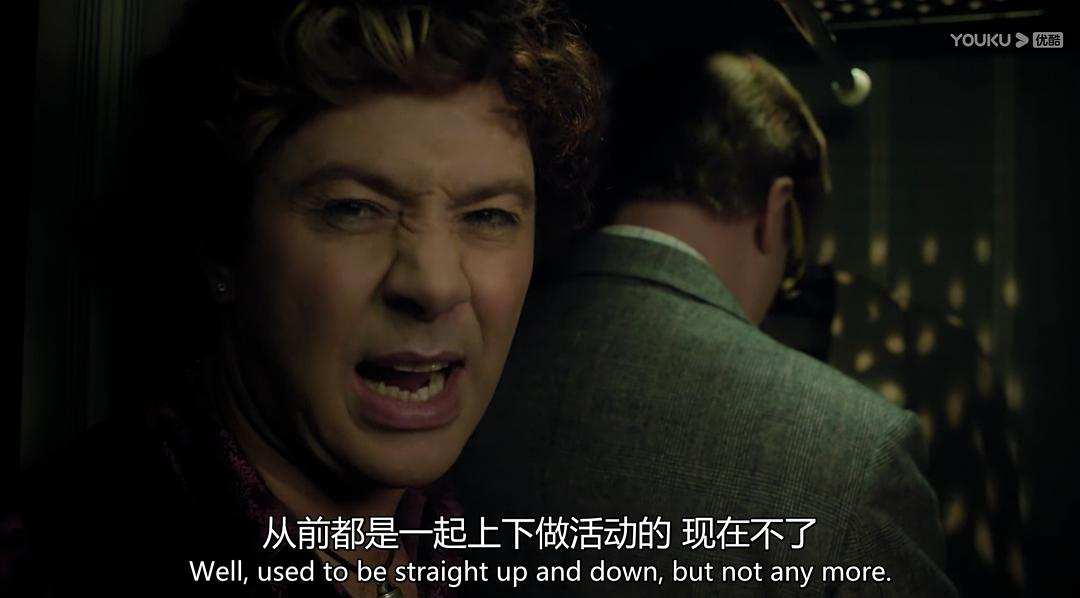 瑞贝卡说话时的神态也是压抑的,她听见让她不高兴的话时,总是低头、皱眉然后猛然抬头,硬挤出一个微笑,牵着嘴角说出尽量得体的话。可那神情却让人看着压抑和生硬。对比瑞秋、斯图尔特生气就瞪眼、高兴就笑,这两人的表情要生动得多。而卡尔也是一副阴郁、心事重重的表情。所以斯图尔特会说:你们两个生起气来的时候,都要漂亮的多。(因为生气才是自然的表达。)