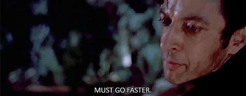 n11. 杰夫·高布伦(Jeff Goldblum)躺在吉普车后发现后方有霸王龙追赶时,说了一句:“一定要快点”(Must go faster)。