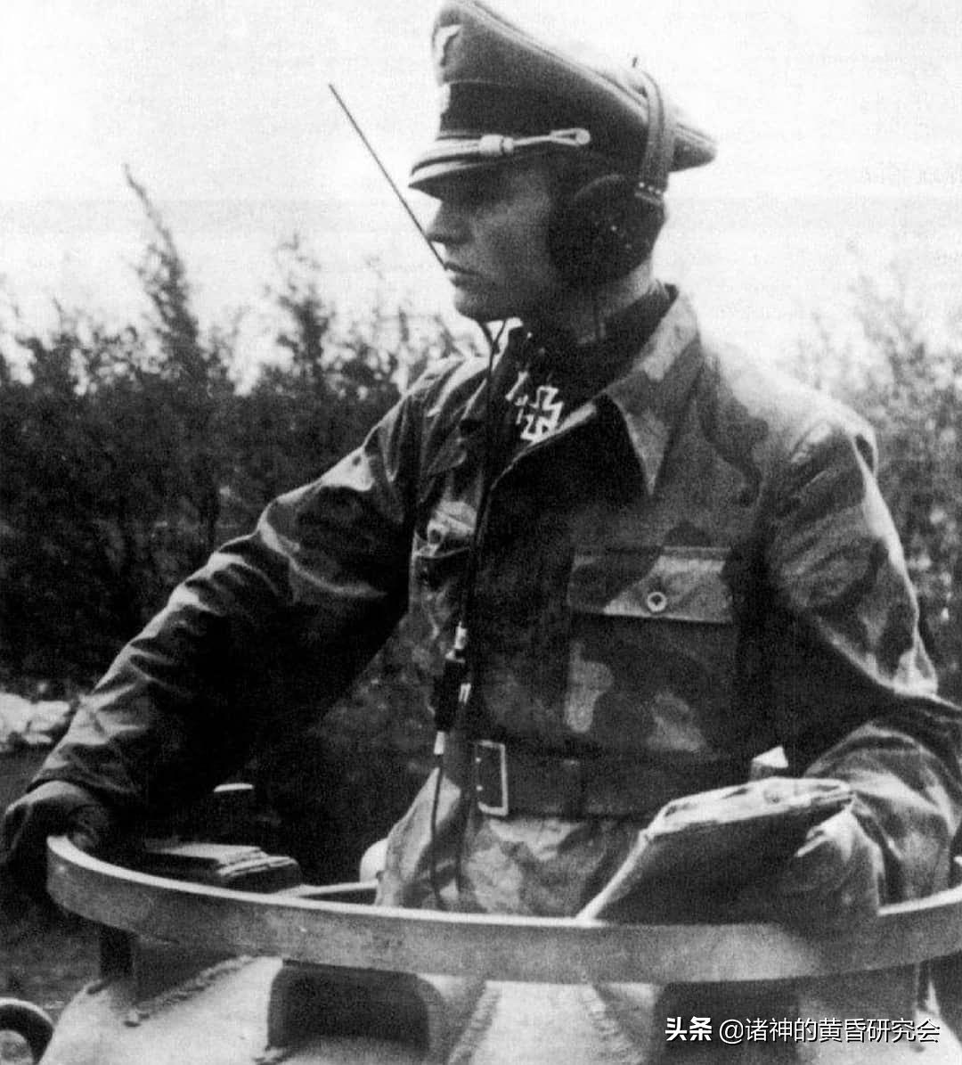 上图中正在豹式指挥塔上发号施令的正是党卫军第12装甲团团长马克斯·温舍,站在坦克前背对镜头从左往右的分别是: