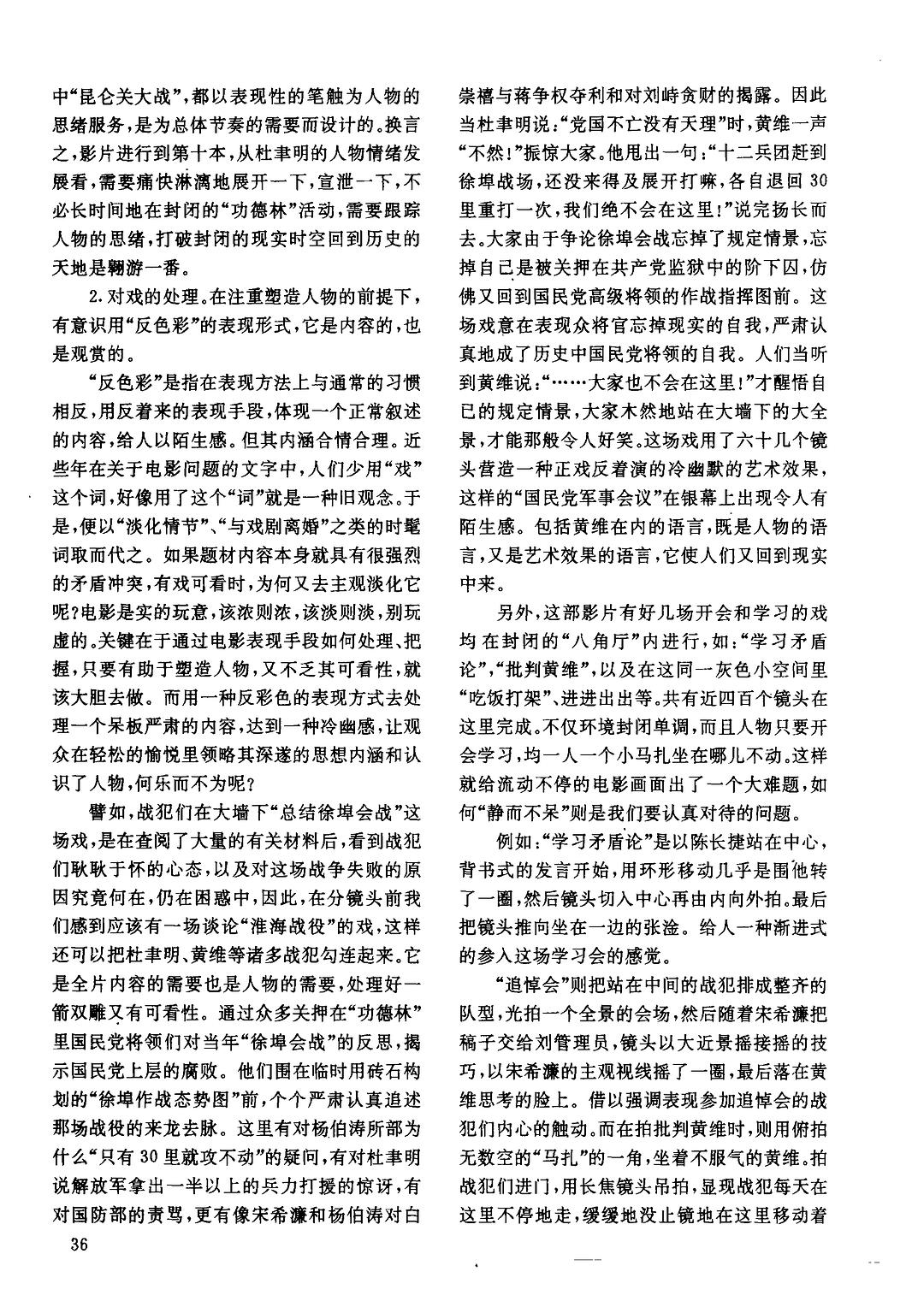 1992年1月,《艺术研究》发表了李前宽、肖桂云的《导演<决战之后>的思考》。其中有真实事件反映,也有大量的艺术加工。比如战犯们在功德林内对徐蚌会战的失败进行复盘:“像那大沙盘,生活当中绝不会出现这样的场景。但是为什么出现了以后,公安部还非常认可,观众也特别认可?因为这场戏,表现了他们所有人的心理。他们在讲到这场战争怎么会输的话,因为他们一直闹不明白他们为什么会输。其实他们输的是人心。 ”