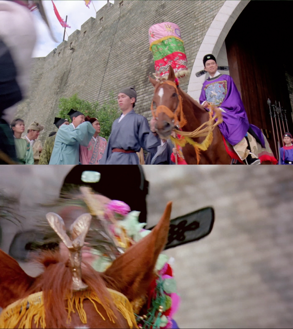 关之琳爸爸(吴孟达饰演)以为他是被找来替代女儿出嫁的别家女子,哥哥弱不禁风的娇喘、自带风扇的飘逸感,让他一见钟情。