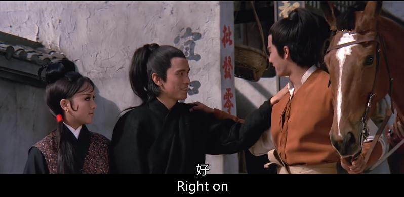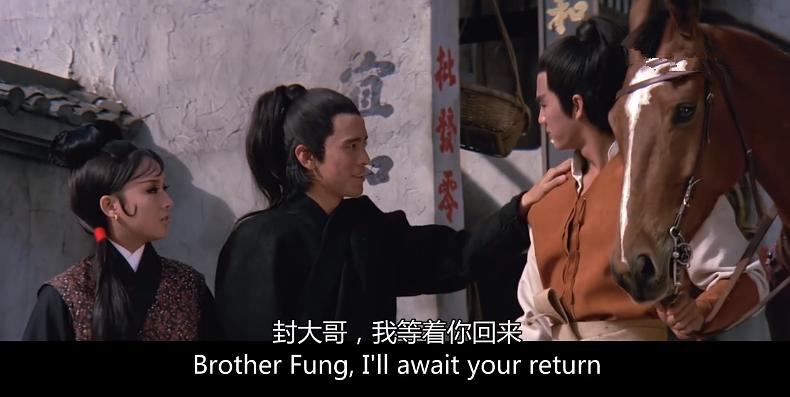 1969年,狄龙和姜大卫在《保镖》中还沿袭着当时SB武侠双生的一般套路,不是《金燕子》中的罗烈与王羽,就是《大醉侠》中的岳华与陈鸿烈。张彻的电影向来不重视女人,但真正在电影中完全脱离女人探索男人与男人的生死相依,却是由狄姜开始,直到第四代弟子五人打包配置,女人已经从一个温柔善意的点缀变为基本可以忽略不计。尽管如此,我却喜欢张彻电影中刻画的那些女人,她们或冰雪聪明,或调皮泼辣,或忠贞刚烈,虽笔触不多,由于出自君子手笔(哪怕是君子的漠视),即便《刺马》里的“祸水”米兰,坏也坏得赤裸坦荡、情非得已。