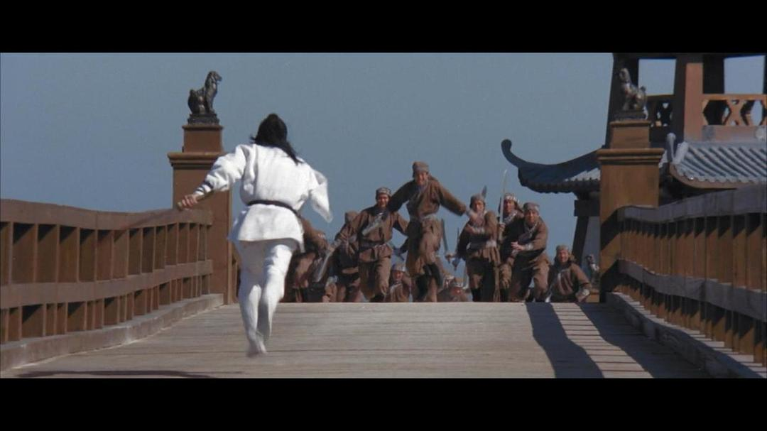 最美的一幕是最后一场:蓝天如洗,长桥如虹。天空干净得一丝云影也无,正如雷力的心境:没有杂念,只有复仇。他遥对着桥那边出现的仇人,站在横七竖八的死尸堆中,单手执刀,空袖飘荡,满面凄厉决绝。青天白日,朗朗乾坤,人世间一下子如此空荡如此寂寥。刚刚倾心的那人儿无端端死了、再也活不转了,你没有理由不拼命。