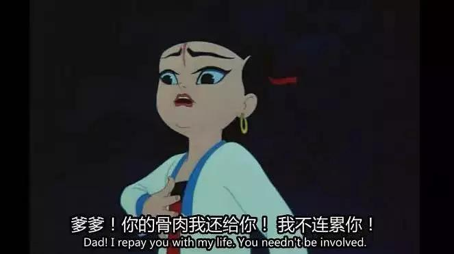 我问过很多人,和我同时代出生的那些人他们都说,第一次看[哪吒闹海],当看到哪吒含泪自刎的时候,自己也眼泪哗哗哗,感到天昏地暗,悲从中来。2003年春,重温这部上海美术制片厂的经典动画片,那无限的悲凉依然能够如醍醐灌顶,浇透我的全身。鲁迅先生说的一点都没错,那些该死的文化古籍里自古就蔓延着吃人的气息,[哪吒闹海]只是其中画龙点睛的一笔。