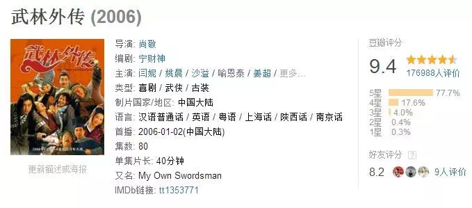 正是这种搞笑中有感动、搞笑中有深情的风格,成就了两部热门的电视剧,两部剧的评分都达到了9.4分。