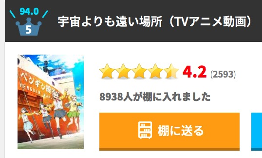国内的bangumi排在历史40多名左右