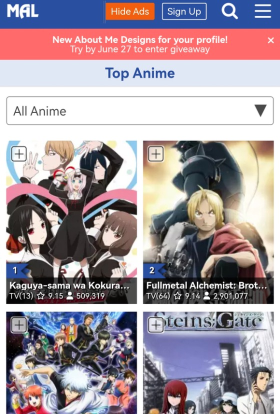 MAL是世界最大的动漫评分网站,参评人数动辄几十万