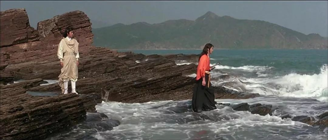 其次程小东的武打设计真是好,好就一个字,配合着萧瑟雄浑的悬崖和大海,以及人物对比强烈的色彩和颇有意境的场景设计,气质纯正苍凉,虽然这部电影中已经有在其之后电影如《东方不败》的审美日式的倾向,但由于本身故事就有日本背景而觉得更为融合。何况此时的程小东多继承了邵氏电影的优点,武打也好场景也好,依然保留着一份古朴大气。