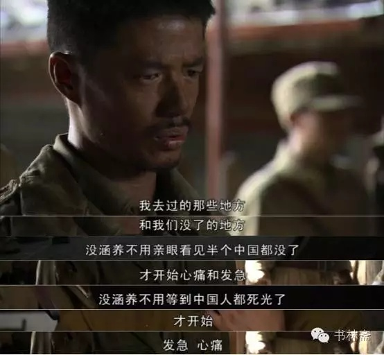 n直瞪眼的花花世界,好大的河山,全没了。国土已经沦丧到这个地步了,中华民族到了最危险的时候。n n这是唤起观众爱国心的命题,但它也不过只是本剧第一层命题。n n它的第二层命题是鲁迅式的思考。n n剧中除了主角龙文章外,还有形形色色的溃兵,这些溃兵被龙文章组建成了炮灰团,第一层命题里说的是「每一个有志青年」,可这些溃兵早就麻木了,他们面对时代的无力感,放下了武器,窝在小镇上不愿移身。n n于是龙文章说,英国鬼死于狭隘和傲慢,中国鬼死于听天由命和漫不经心。n