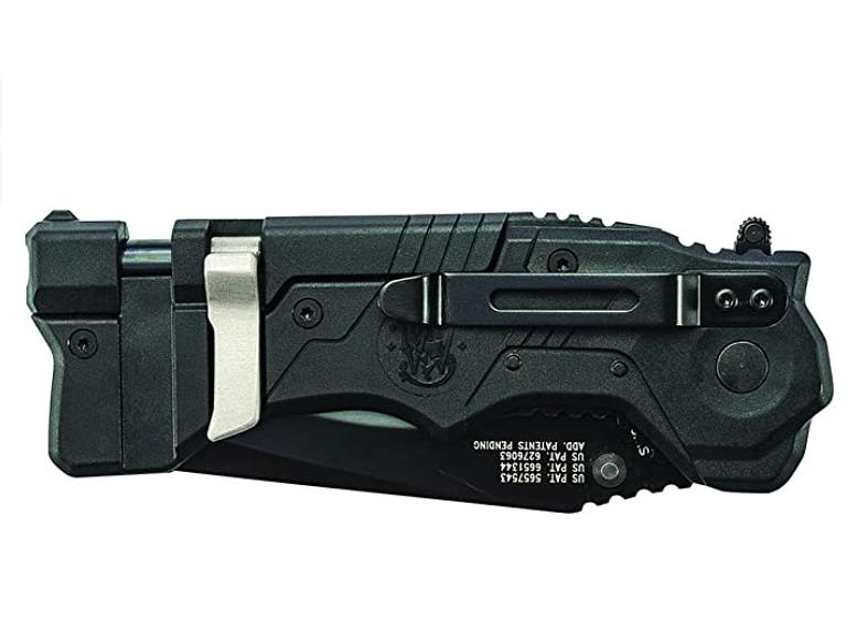 男一的佩刀为smith & wesson同品牌的1st Response SW911B。刀刃设计的较凶恶,刀尾有破窗器。售价也不贵80美元。现在仍然能买到。
