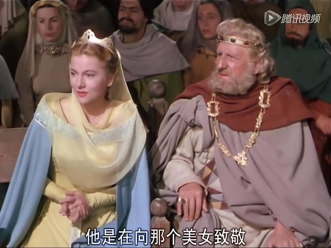 第一次十字军东征失利,查理王被掳,查理王的弟弟约翰亲王伺机篡位。诺曼人亲约翰,盎格鲁人亲查理,危机四伏。艾凡赫作为盎格鲁人的杰出代表,在策马比武大会上力挫五位诺曼骑士。精彩的比赛不但叫人了解了骑士装备(盔甲、侍从与披着战袍的战马),还很巧妙地映射了骑士之爱,算是影片的一大看点。另一卖点是对犹太人的塑造:埃塞克与他女儿丽贝卡。我们可以看到信仰基督教的诺曼人、盎格鲁人与信仰犹太教的犹太人之间的仇恨与隔膜,更加突出英雄艾凡赫超越宗教界限的人道主义精神。特别喜欢伊丽莎白泰勒饰演的犹太姑娘丽贝卡。泰勒将犹太姑娘的羞涩、神秘、坚韧表现得淋漓尽致,她的眼神大有看头。相比而言,琼芳登的表现比较一般。最后值得一提的是攻克城堡之战与艾凡赫为解救丽贝卡的策马比武,情节跌宕起伏,情感真挚感人。不管脉脉含情的丽贝卡如何令观众陶醉,骑士艾凡赫始终忠于他的爱,罗伊娜公主。对于丽贝卡,艾凡赫只有感激和作为骑士的安良除暴。