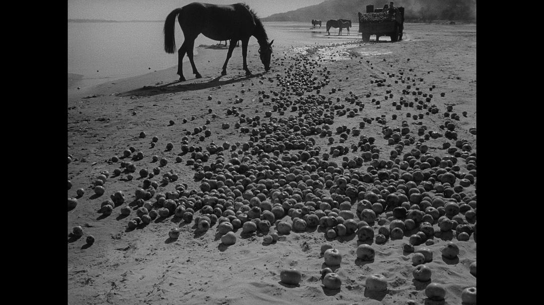 9.罗纮武和万绮雯上天落地后,出现一匹拉苹果的马,苹果散落一地,来自于塔可夫斯基的《伊万的童年》。