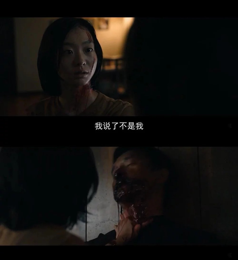 至于疤痕大叔,具慈允似乎是为了泄愤,她用手掐住大叔的脖子,把他按在墙上拎起来,用手掌快速击打他,直到他血肉模糊。