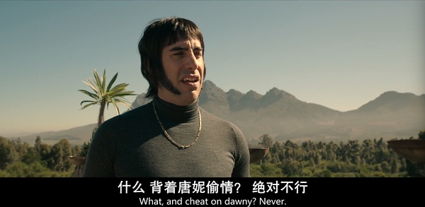 弟弟的半个硕大的睾丸就懒洋洋地躺在哥哥脸上,如此残暴的视觉冲击让人愕然失笑,但我相信同时也会让相当一部分人不适甚至反感,就像有些人看《电锯惊魂》会获得很大的快感,但另一些人看着看着就吐了。但你知道谁看到这个场景会最生气?是英国摇滚乐队Oasis的主唱Liam Gallagher。这位歌星在2012年时曾与萨莎·拜伦·科恩发生过冲突,萨沙蓄谋了一场隐忍的报复,4年后,他模仿Liam Gallagher的造型,塑造了诺比的形象。不知Liam Gallagher有没有看这部电影,以及他会不会认出舔别人睾丸的家伙就是自己。