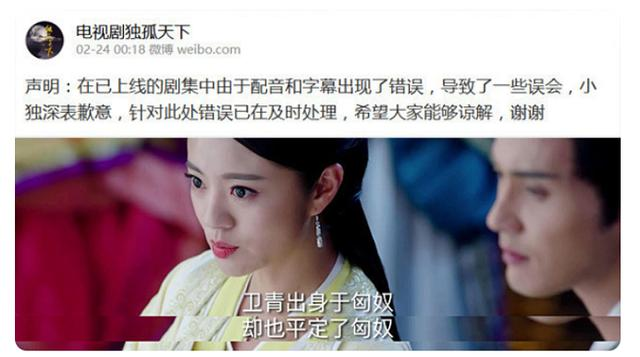后来剧方在微博致歉并做了相关更正。