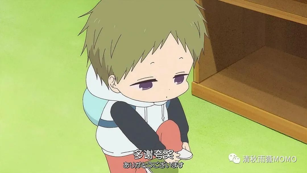 又是失去父母的兄弟俩,《柚木家的四兄弟》也是诶。n画风可爱,连翻译都好可爱。n每集中场的插图都好可爱和形象啊。nn托儿所育婴社的宝宝们好可爱啊!好多糯米团子!跟家人的发色都是一样的。n每个孩子都像个挂件一样趴在哥哥身上,好可爱。n被猪又吓哭那里每个人都像只小仓鼠一样躲在鹿岛龙一腿部,好可爱。每次哭哭T﹏T的星星眼都好萌!n运动场上每个孩子都被当成暖手宝追着跑好可爱!n大家一起睡午觉好可爱的画面啊。n各个小朋友都穿上泳装好可爱啊!踩进水里的小小脚丫。还有午睡。nn虎太郎好可爱啊!呆呆萌萌的,小小一只胖嘟嘟,可又好懂事。n虎太郎爆炸头好好笑哈哈哈,自己穿袜子好萌啊,还有熊猫卫衣好可爱。n戴毛线帽的虎太郎好可爱!n以为虎太郎这么沉稳,结果是被老虎吓到脚移动不了哈哈哈。n虎太郎被海报封住那里一动不动像只小僵尸,而且虎太郎总是慢一拍,大家跳的“嘭”那个屁屁舞好可爱。n被婆婆提溜一下就起来的虎太郎好可爱!n挤柠檬脸都挤红了,被哥哥摸头就笑得很开心的虎太郎好乖啊。n给哥哥送饭盒的虎太郎太可爱啦!!!被萌晕!n抱着哥哥小腿的虎太郎和要哥哥抱抱的虎太郎好可爱!!!n被奇凛拉着跑都飞起来的虎太郎哈哈哈。n戴墨镜的虎太郎像宝贝老板哈哈哈可爱捏~n虎太郎一只手只能握住哥哥的一只手指!n穿泳裤的虎太郎好可爱!肉嘟嘟的!n伸长手脚等哥哥来抱,还哭唧唧,龙一即使被水绊倒还是一下给他举高。n婴儿时期的虎太郎可爱加倍加倍!n穿个生菜服跟哥哥的玉米服滚一起好好笑!n帮破壳的小鸡崽一起出力的虎太郎一脸红彤彤好可爱!成为鸡妈妈啦!nn鹿岛龙一“怎么不早告诉我,把自己憋到发烧”,把虎太郎踹怀里那一幕好可爱啊。n哥哥也想加入运动社呀,被迫长大的哥哥。n被虎太郎压住那里好可爱!虎太郎流口水了,好萌啊!n狼谷隼和鹿岛龙一是一对!n狼谷叼个面包从鹿岛身后出来好好笑。n狼谷隼每次抱着小鹰都像提着麻袋。n几个人女装那就龙一不违和,狼谷隼对着奇凛爸爸这无语的声线好好笑。nn小鹰哭起来又可怜又好好笑,贱贱的、欠欠的。n跟哥哥狼谷真是相爱相杀,互相嫌弃的兄弟俩,小鹰“哥哥不爱我”,狼谷“叽叽哇哇的弟弟”。n小鹰的哥哥居然是初三的,还以为是高中部的,把弟弟夹腋窝好好笑。n狼谷,好适合他的名字。n开屏就是鼻涕横流的小鹰真的好搞笑啊哈哈哈,鼻涕都要蹭哥哥裤腿上啦。n涂鸦哥哥的棒球被无视了吧,老奶奶真好还教育小鹰,让他知道自己的错误。nn小鹰牵着虎太郎的手好可爱的一幕。n呆呆总是一脸冷静的虎太郎和吵吵闹闹的小鹰,小鹰老是窝在虎太郎身边。n一害怕,小鹰就抱住虎太郎,嘿嘿。n小鹰“虎太郎去哪了”哈哈哈好好笑,还和拓马争虎太郎好可爱。n小鹰光着脚丫子把脚怼到虎太郎耳边哈哈哈。n小鹰给虎太郎打电话那里好可爱!n两人一起逛庙会好可爱!牵手手!n小鹰哭得好可爱!n虎太郎一下就帮小鹰拉到剑啦!拉之前小鹰这专注的表情好好笑!n虎太郎的棉花糖我最后还是融化了,哈哈哈表情又可怜又可爱。n举手手要游泳的小鹰被哥哥抓住真的好好笑。nn数马和拓马双胞胎两个人不同性格,“痛痛飞走啦”好萌。n数马生病躺床上好可爱啊~n拓马抓住小鹰的袜子脱掉那里可爱又好笑又想哭。n哭哭的拓马和微笑的数马,反过来的两人那里也好可爱,坚强棒棒哒的拓马。n他们的爸爸好好笑,哭哭包。nn婆婆真好,不破坏奇凛还是孩子心性对于魔女和魔法扫帚的美好幻想。n奇凛和虎太郎站一起面对猪又那里好可爱啊,红彤彤亮晶晶的眼睛,还被狼谷打了哈哈哈好可怜。n奇凛爸爸这个告白狂魔。nn男秘书“趴我背上我背着你们”,好幽默哈哈哈,我怀疑是心里话。n“龙一少爷你进入变声器了”哈哈哈好好笑。n对着虎太郎“啧啧啧”好像在叫小动物,虎太郎小小一只蹲在那里太可爱啦!!n“看到草丛上长了两个屁股”哈哈哈神经病啊。n小鹰给虎太郎打电话那,男秘书“要是要问内裤颜色的话,是黑色的”哈哈哈好神经的秘书,冷幽默。nn兔田出场的时候我还以为是女生,居然是男生。nn山羊和他那个朋友根津也是一对!两人还是竹马。被山羊戳脸颊的虎太郎好可爱!n草丛那里戳虎太郎好可爱!山羊“按顺序来”哈哈哈。n根津的弟弟好漂亮啊,都留着同款遮眼睛发型。n山羊形象的诠释什么叫被萌得出血。nn片头曲狼谷和另一个男生插着兜跑步,一想到如果他们下一步摔倒,就摔个狗吃屎,我就想笑,谁懂我这奇怪的笑点。nn猪又,好奇怪的名字,后边的同学嚼舌根我还以为说的是几个孩子像猪一样趴在大人身上,结果是女同学的名字。nn龙一真的好温柔啊,以自身的经历安慰牛丸雪,这种比单纯的安慰更加有用。n牛丸雪背后抱猪又好有爱。n小鹰和虎太郎一起看奥特曼漫画好可爱!n还有奇凛和小鹰趴在地上好像两个手办哈哈哈好可爱啊。n哭哭果然会传染,一个小孩哭一片小孩子就哭了,不过虎太郎是个例,淡定得一批。n虎太郎鼻涕流一大串好好笑啊哈哈哈,小鹰还拉着牛丸雪的裙子给他擦鼻涕,太坏啦!n兔田脑海中幻想的小朋友想他到哭泣的场面好可爱啊。n犀川有种淡定的搞笑,小孩子们被他尊敬得瞬间自我感觉拔高了哈哈哈挺胸的小鹰他们真的好搞笑啊。nn牛丸雪牵着虎太郎的手的视角和犀川握着虎太郎的手跟龙一说拜拜的画面真的太可爱辣!n犀川把虎太郎当小猫逗呢哈哈哈,又是逗