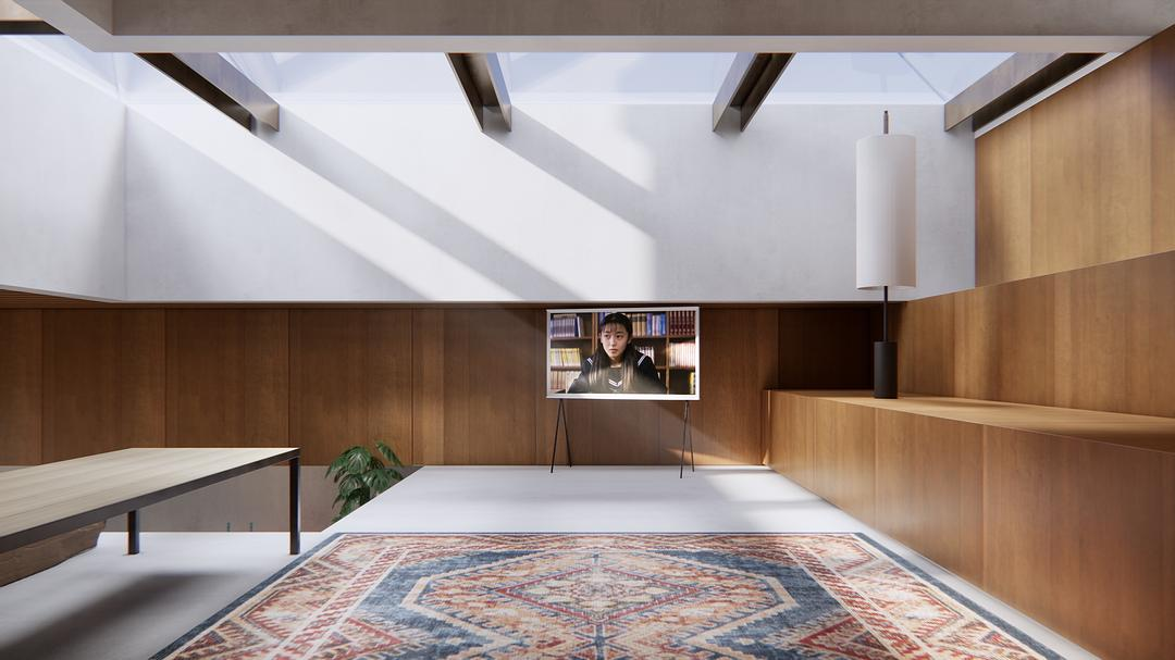 【有自然采光的起居室】作为距离主要光源(庭院)较远的区域,起居室和卧室上方预留了L字形天窗,让起居室和卧室都能有柔和的自然光线。