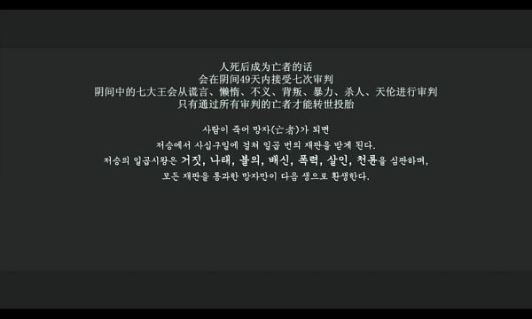 迟到千年的忏悔金弘洙的故事在第一部已经完全展现在观众面前了,所以重点自然落到了带着金弘洙通关的江林身上。在第一部里,导演留下了很多伏笔,比如江林闪回的记忆、对金弘洙的宽容、对金母的怜悯等等,这些表现都不像一个任职千年,看破红尘的鬼差。所以在《因与缘》里,借着为金弘洙辩护的契机,江林开始讲述自己的秘密: