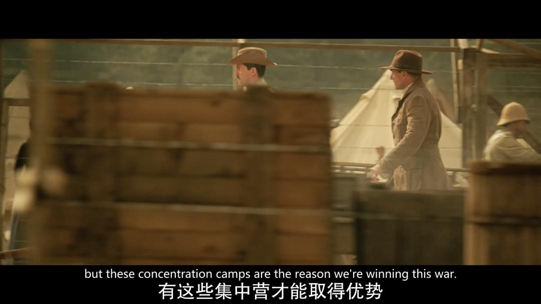 英军之前的久战不下,伤亡惨重,让基奇纳放下了大英帝国的“绅士风度”,对布尔人采取了极其残酷的战争手段,不仅采用“烧毁一切”的政策切断布尔人的食物和供需品,还将大量的平民关入集中营,而他们在此受到了残酷的虐待(这就是历史上第一个以“集中营”命名的平民囚禁地)。电影中也短暂出现了布尔人集中营的一角。
