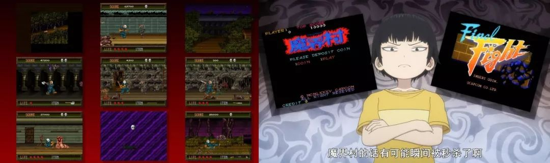 不是的,事实上就在第一集动画里头,我们便不仅看到91年面市的《街头霸王2》,也能够看到经典的恐怖生还游戏《腐尸之屋》,《快打旋风》,《魔界村》等等游戏的身影。