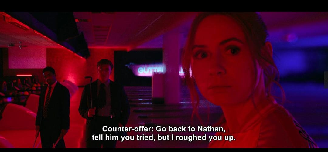 但是吉兰小姐姐的动作戏,真的可以用“花拳绣腿”来描述,力气看着也不大,反应速度也不快,偏偏男性反派们要配合她,被她血虐,这看着怎么爽的起来呢?