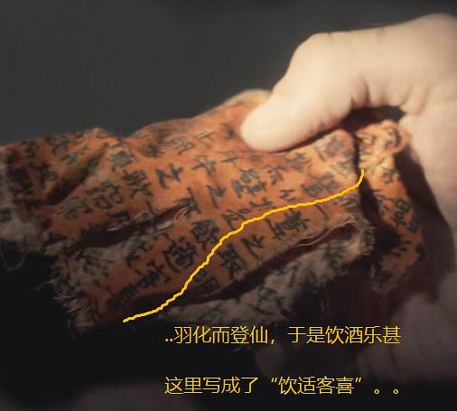 严重怀疑是道具组员工抄了一半发现字太多,心想反正也没人看,于是看字的个数差不多了直接抄最后一句“客喜而笑”了,别问我为什么知道,问就是上学的罚抄的经验