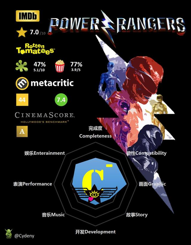 其实没人对这一系列感兴趣(我小的时候可讨厌它了,但是作为家长又觉得这个系列很不错)。这一次试图对基础人物驱动力的改编非常有趣,成功地将类型片和有英雄色彩的超级英雄奇观融合在一起。如果你觉得这部充满着暴力和阴暗面的超凡战队电影非常荒谬,那就应该注意到它是和800集相对友好的电视系列剧共存的。电影只是建立在孩子们喜欢的那种友好IP剧上改编成一个更黑暗、花了更多预算的大片。而且这部电影真的就是一部大片,这一点很少人能做到。