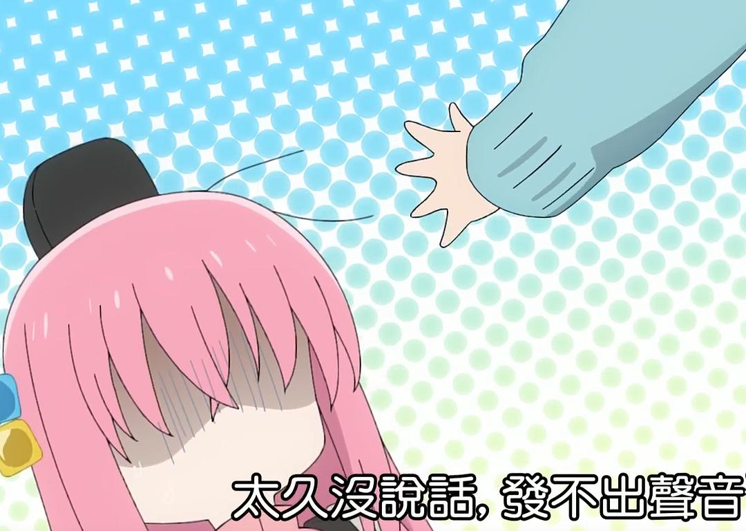 在演出方面,我想着重探讨一下对于波奇酱的演出。首先我认为制作组在刻画波奇酱的时候,过多过猛地采用了“表情包系演出”这一手段。作为一个有效增加画面戏剧性、画面张力的优秀手段,该方法被大量番剧所使用,就比如阿妮亚的那个经典坏笑。而本番在刻画波奇酱的孤独的时候,使用了太多太多的这个方法,以至于让我有些审美疲劳。也正是这一点,有点令我感觉,制作组对于生活中孤独、内向的波奇酱并没有什么同情心:把波奇酱内心的孤独与内向完全娱乐化、甚至抽象化,给屏幕面前的观众观赏、把玩、图一乐。如此的表达方式,大部分观众看了会发笑,少部分和波奇酱相似的社恐观众看了会有共鸣。但是,没有观众看了会对波奇酱产生同情。